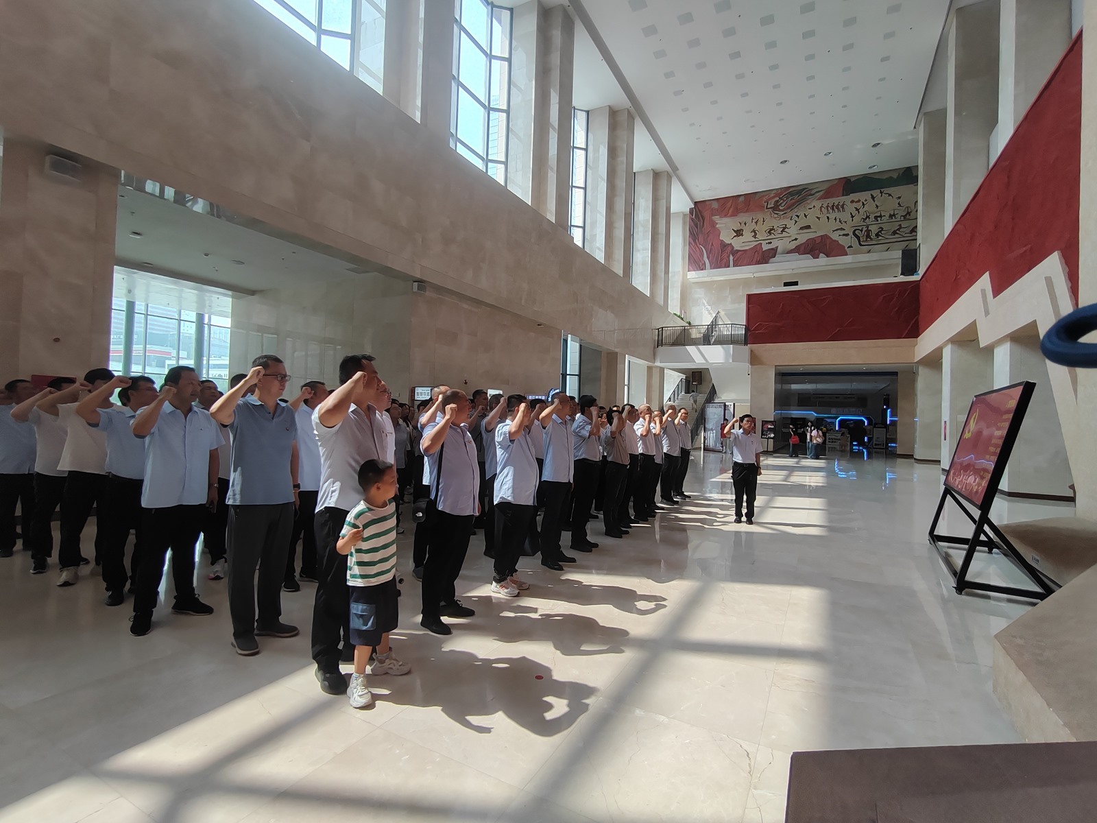 黨員們在紀念館內重溫了入黨誓詞。面對鮮紅的黨旗,全體黨員莊嚴宣誓,誓言鏗鏘,表達了對黨忠誠、為共產主義事業奮斗終身的堅定信念。此次重溫入黨誓詞活動,進一步強化了黨員們的身份意識和責任意識,激勵大家時刻以黨員的標準嚴格要求自己,不忘初心,牢記使命。